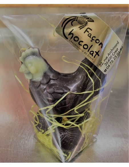 Sujets de Pâques : moulages en forme de poule, poisson, cloche, lapin en chocolat noir doux. Plusieurs tailles