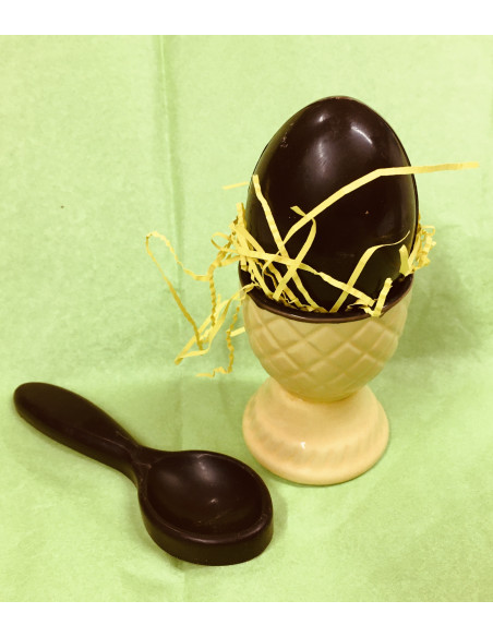 Un oeuf en chocolat noir à déguster avec sa cuillère en chocolat !